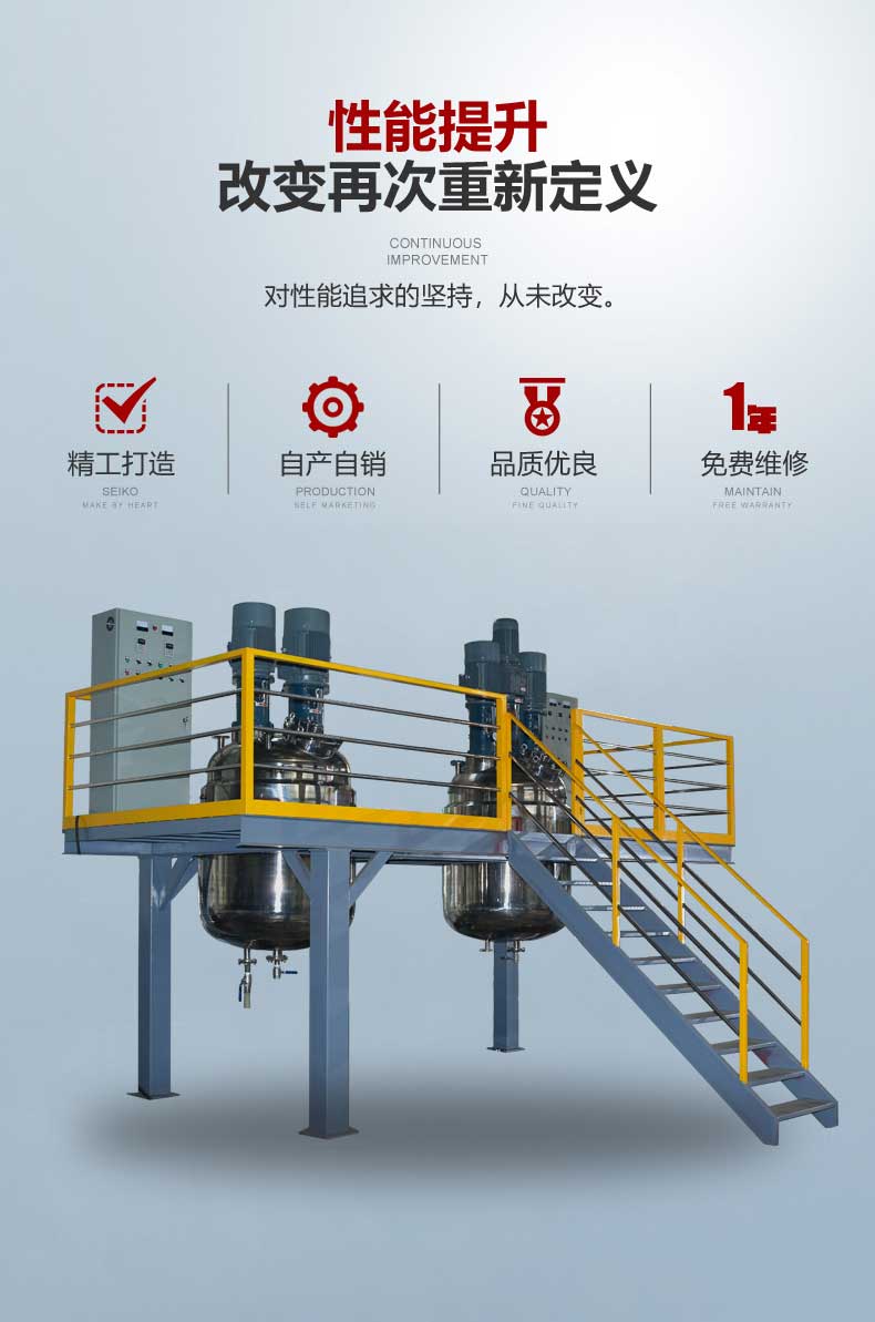 1、創新性的将分(fèn)散、攪拌、研磨(或分(fen)散、攪拌、高剪切乳(ru)化⭕)叁🐪種工㊙️序整合(hé)爲一體的整套設(shè)備。