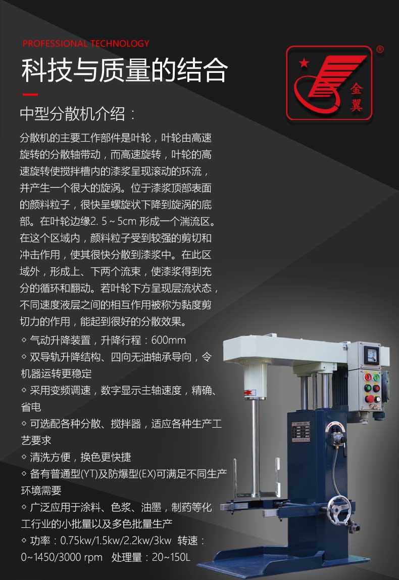 ⊙适用(yong)範圍: 适用于塗(tú)料、油墨、染料、顔(yá)料、矽油、樹脂、電(diàn)子材料、油漆、膠(jiao)粘劑、化學、制藥(yao)、皮革、化妝品等(deng)化工行業産品(pin)的液-固濕法分(fen)散攪拌、混合、溶(róng)解的加工設備(bèi)。
