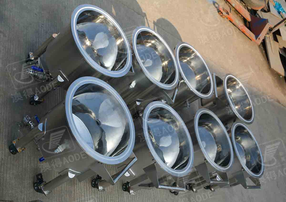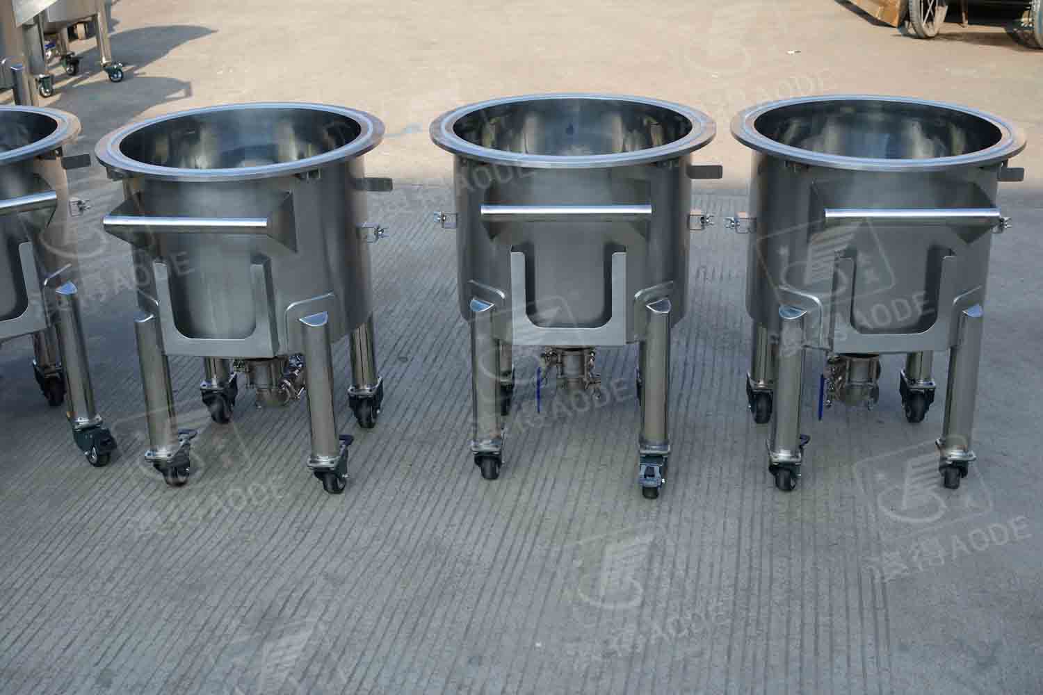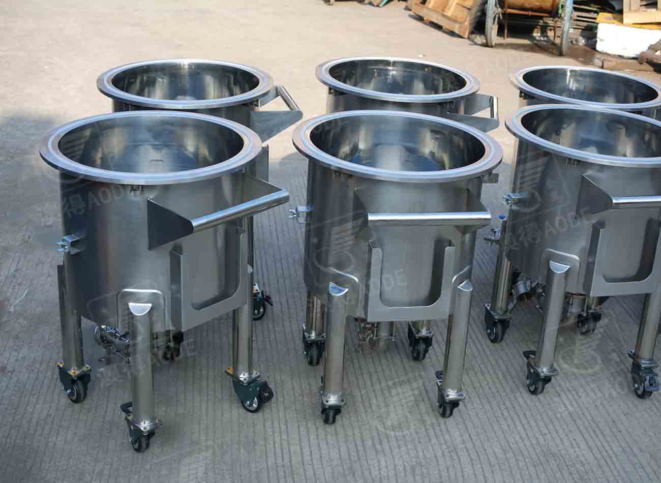 配放料(liao)閥,缸底(dǐ)可定制(zhì)爲平底(dǐ)傾斜出(chu)料,或圓(yuán)底錐底(di)中心出(chū)料,下有(you)移動輪(lun),帶自刹(sha)車裝置(zhi)。