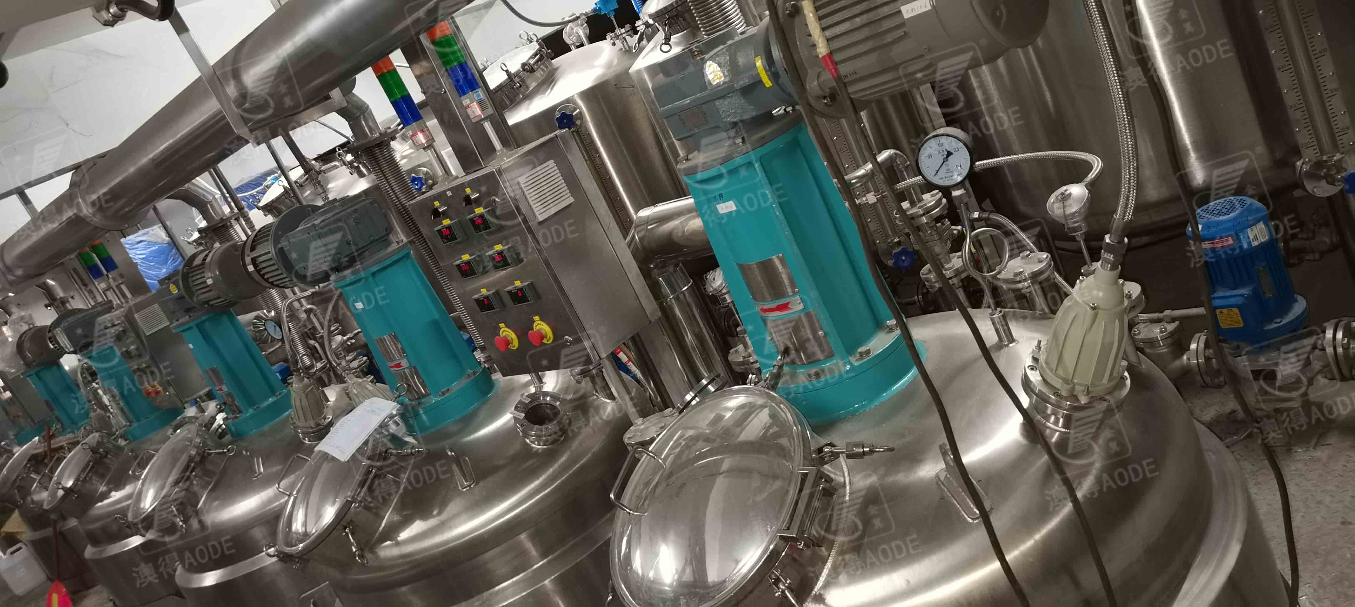 整套(tào)生産設(shè)備如下(xià): 加熱攪(jiǎo)拌罐、冷(leng)卻攪拌(ban)罐、原料(liào)儲罐、冷(leng)水機、鍋(guō)爐、離心(xīn)泵、氣動(dong)隔膜泵(bèng)、 過濾器(qi)、閥門、防(fáng)爆電器(qi)、管道、鋼(gang)結構平(píng)台、PLC控制(zhì)系統。